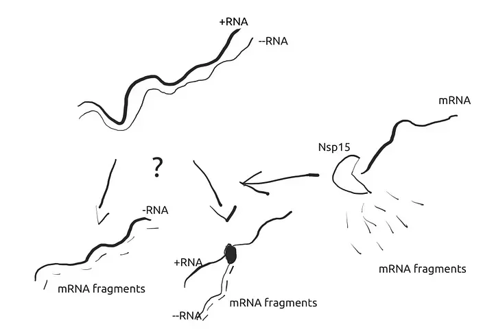 Hybridization between the SARS-Cov2 genome and mRNA or mRNA fragments from the host could work as a gene detection system. It could also be responsible for the development of autoimmunity. The selection of fragments with a better match between viral and host RNAs will yield the selection of highly similar RNA. Viral proteins in turn will have fragments with high similarity to the host.